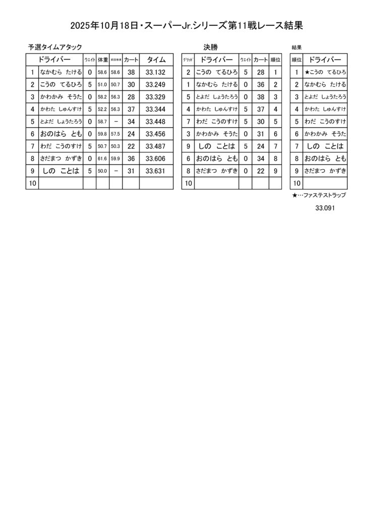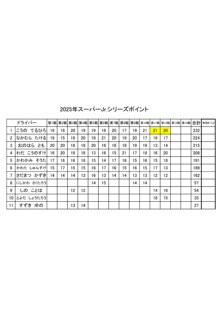 10月19日開催ジュニアシリーズ・スーパージュニアシリーズ第11戦・第12戦結果