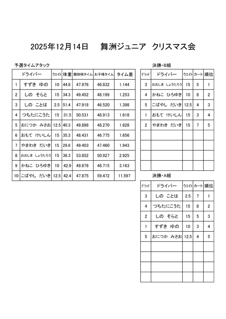 12/14に開催されました2025年舞洲ジュニアクリスマス会の結果です。
