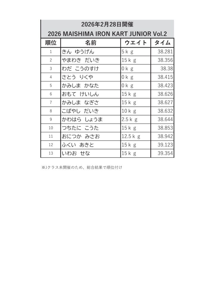 2026/2/28開催の【まいしまアイアンカートジュニアVol.2】結果です。