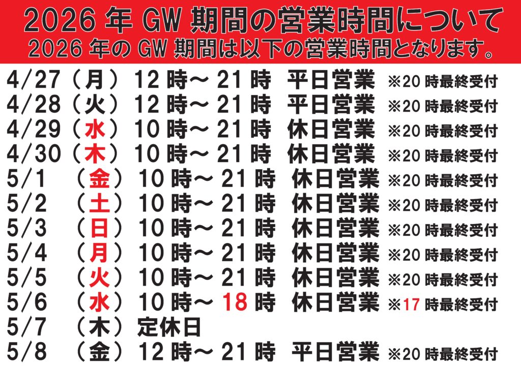 2026年GW期間のISK大阪舞洲店の営業時間は以下の通りとなります。