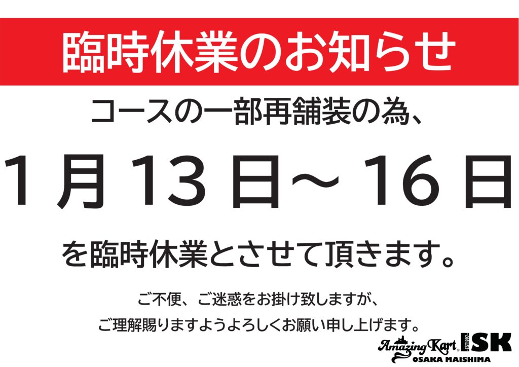 2026年1月13日(火)~1月16日(金)まで、コースの一部再舗装を行います。